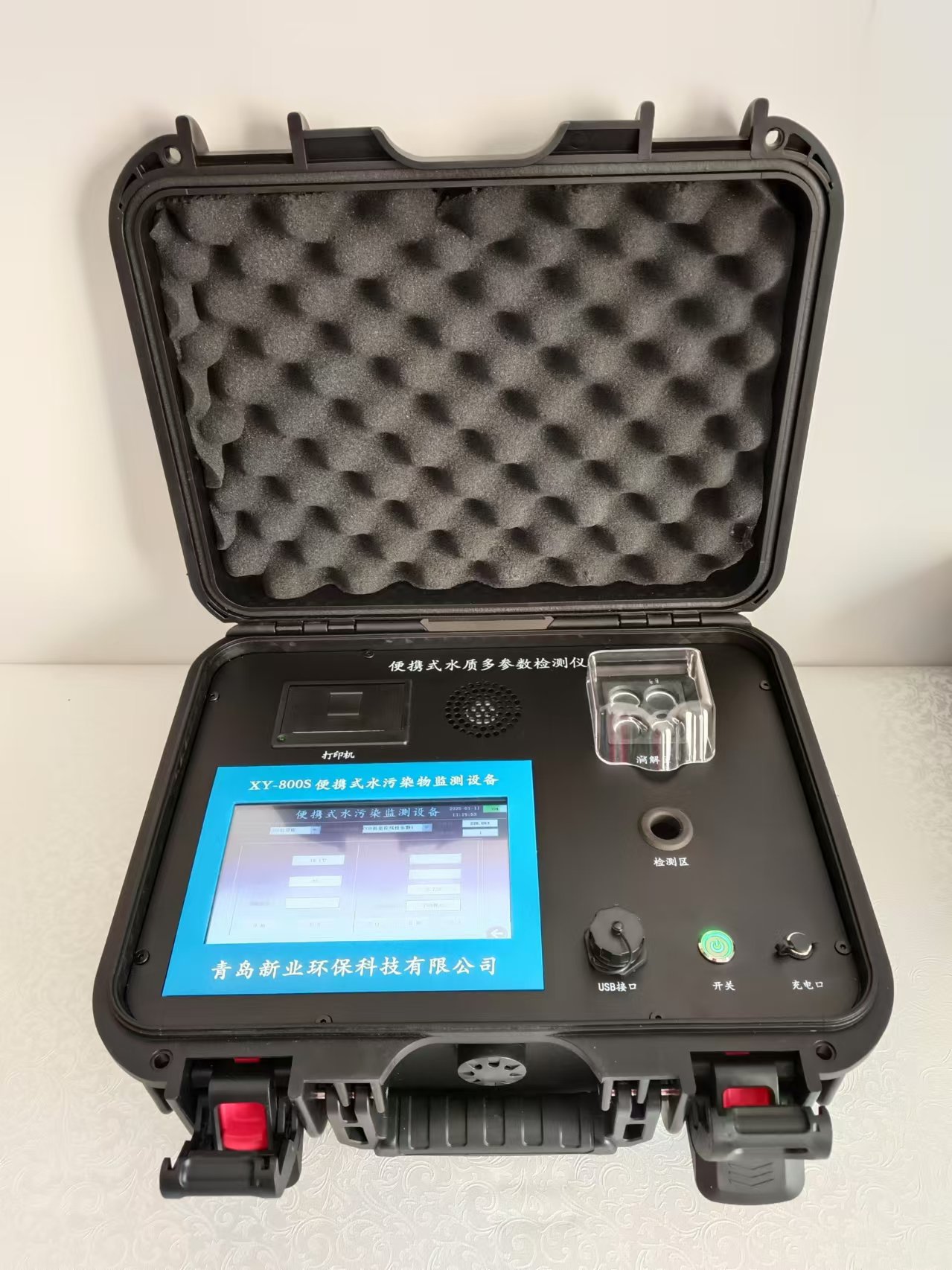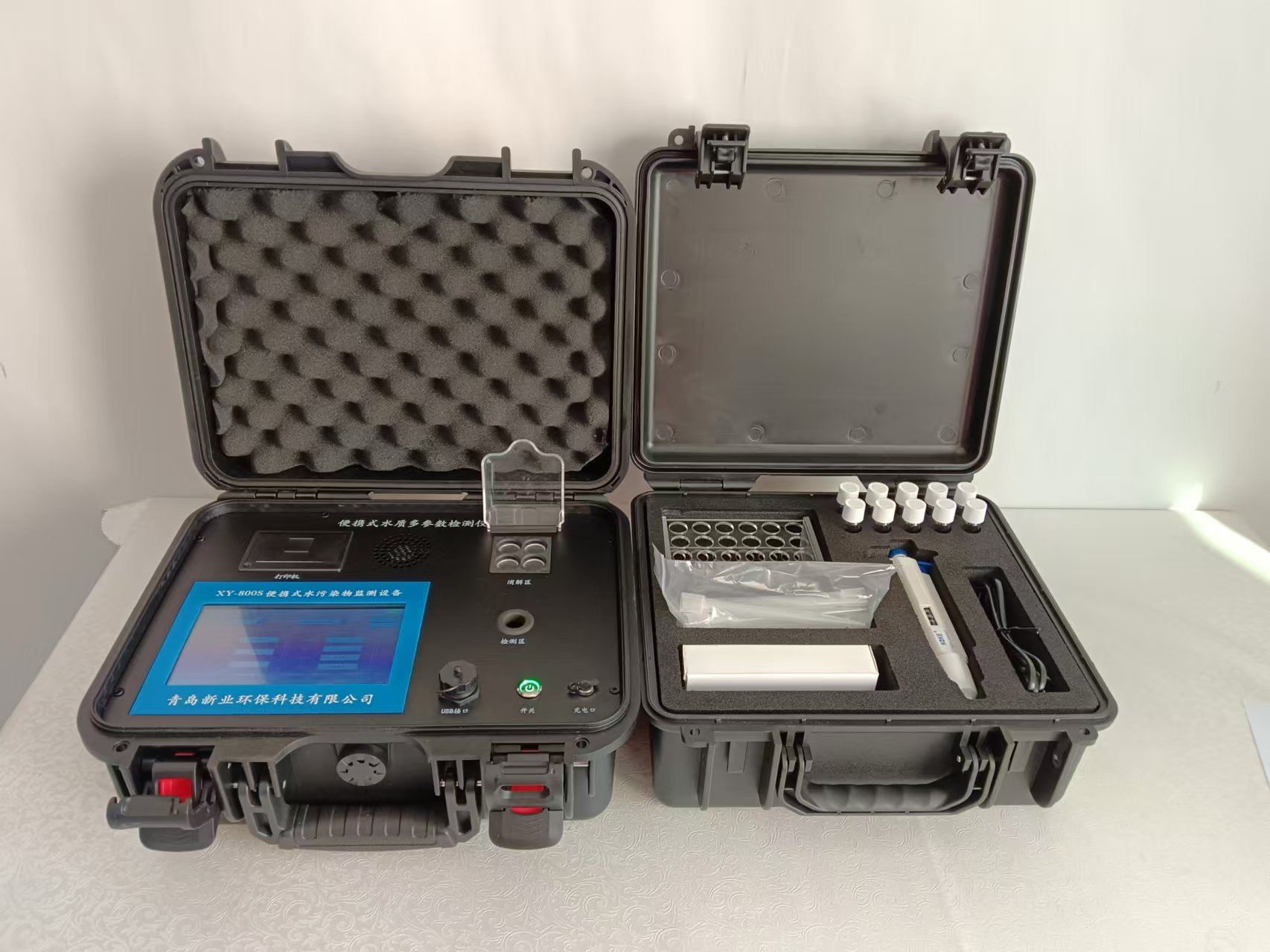 XY-800A型便携式水质多参数检测仪采用防水手提安全箱一体化设计,集成四孔消解模块,微电脑智能系统,彩色液晶触摸屏,进口光源,进口检测传感器,内置高容量锂电池,仪器性能稳定、测量准确、测定范围广、功能强大、操作简单.